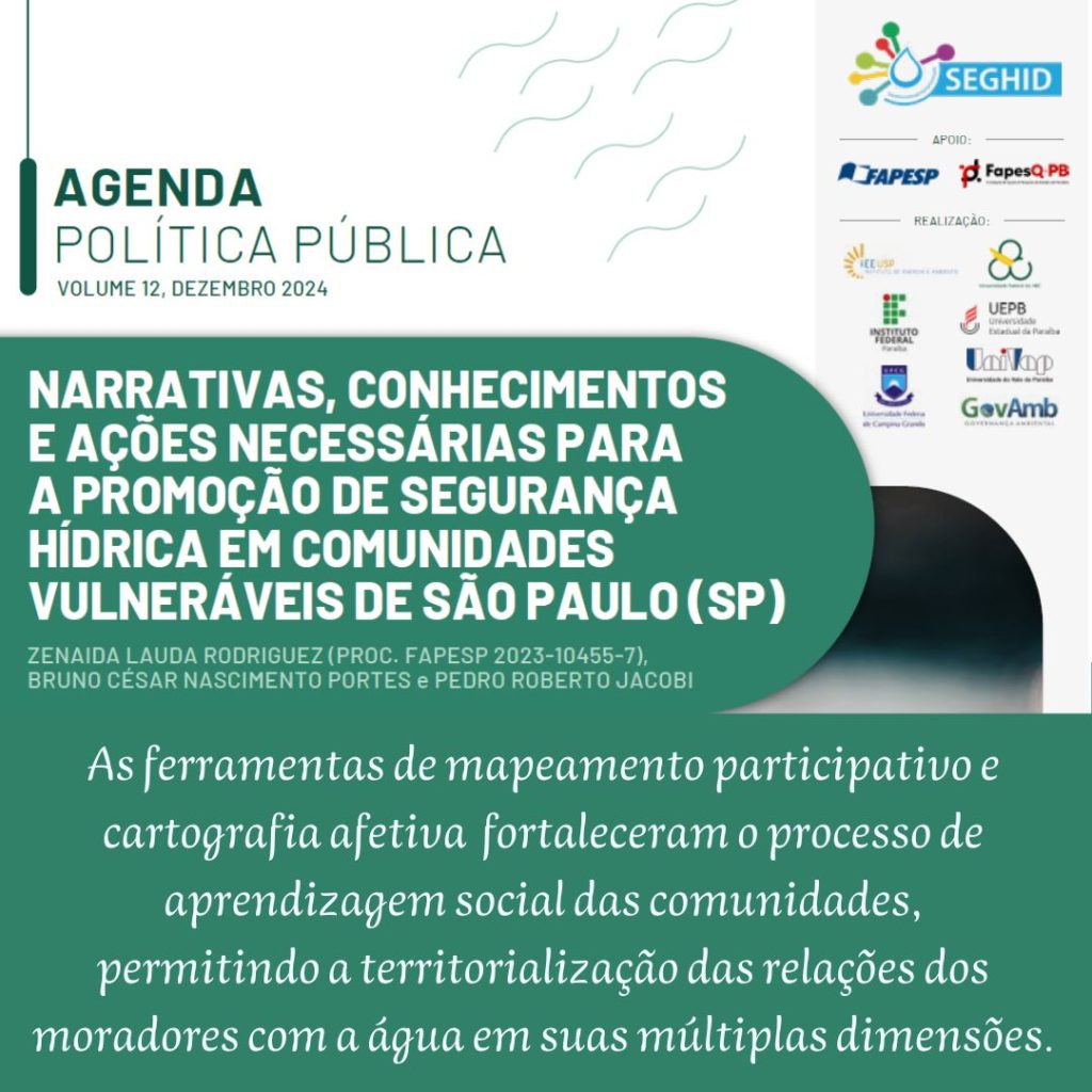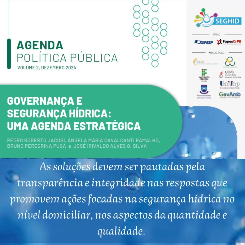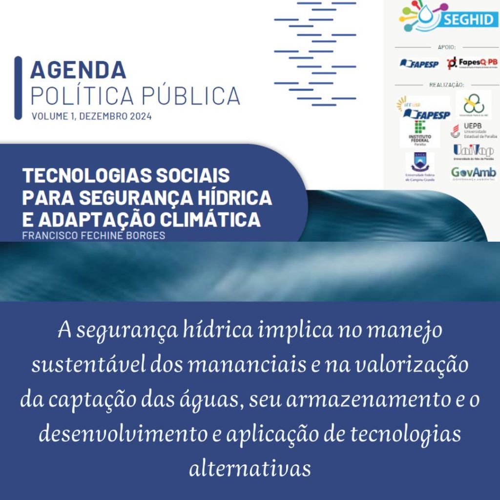 Os resultados de produções científicas sobre a governança e segurança hídrica, impactos, vulnerabilidades e riscos, foram reunidos em 12 volumes formando uma Agenda de Política Pública com o objetivo de mostrar para a sociedade como temas complexos socioambientais podem ser transformados em planos concretos e objetivos para ações políticas.
