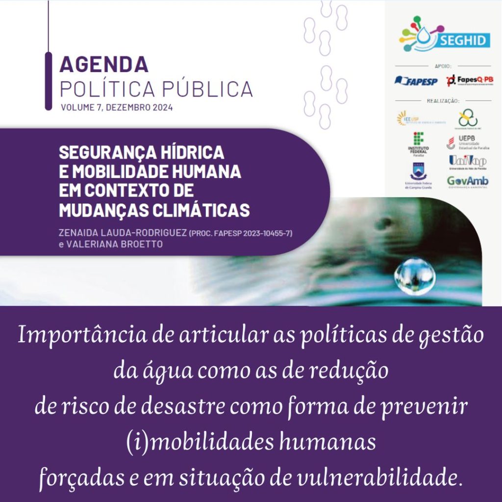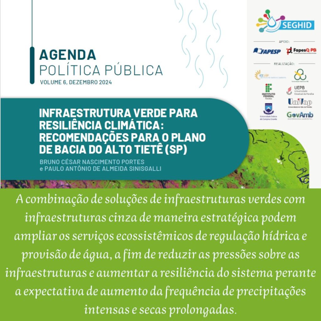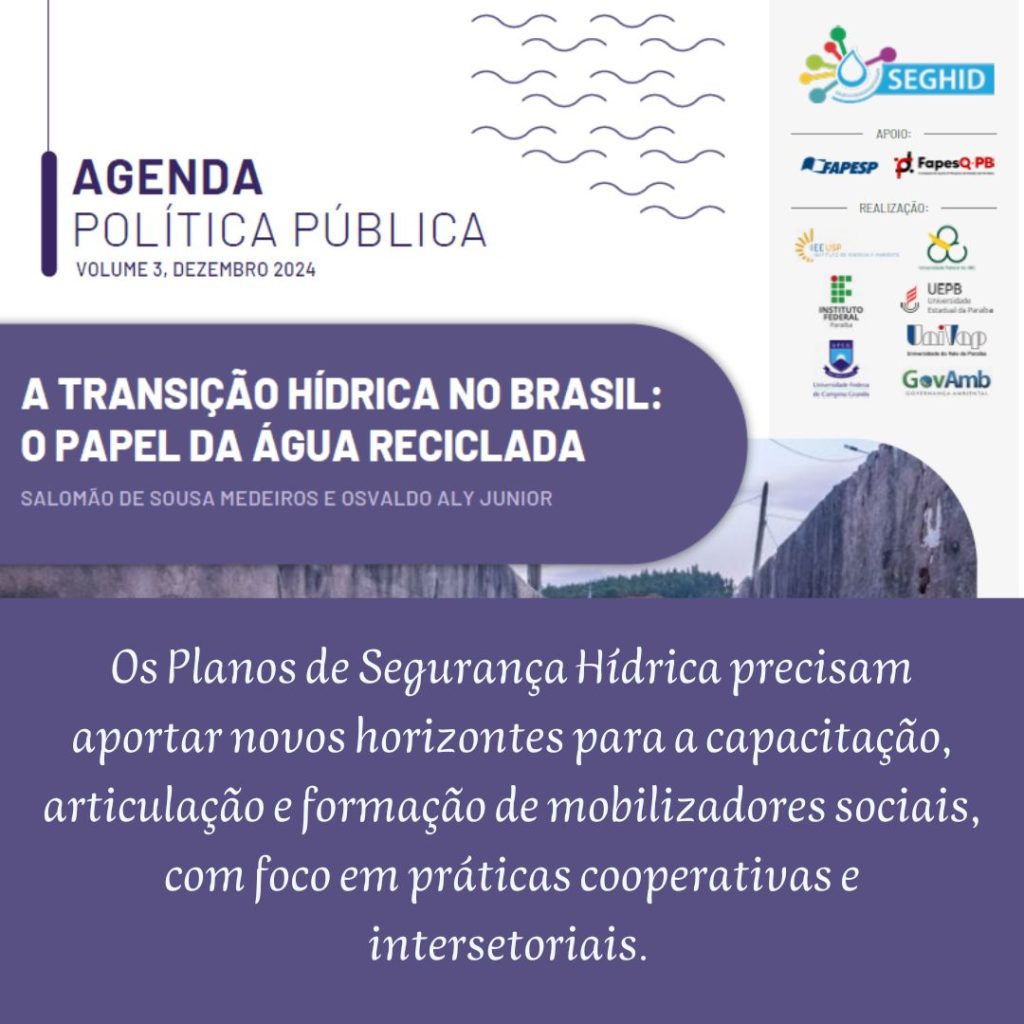 Os resultados de produções científicas sobre a governança e segurança hídrica, impactos, vulnerabilidades e riscos, foram reunidos em 12 volumes formando uma Agenda de Política Pública com o objetivo de mostrar para a sociedade como temas complexos socioambientais podem ser transformados em planos concretos e objetivos para ações políticas.