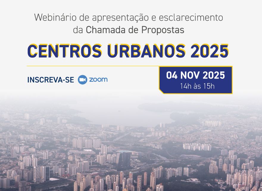 O Programa Mudanças Climáticas promove, terça-feira, 04 de novembro, às 14h, o webinário para esclarecimentos das chamada “Centros Urbanos 2025”.